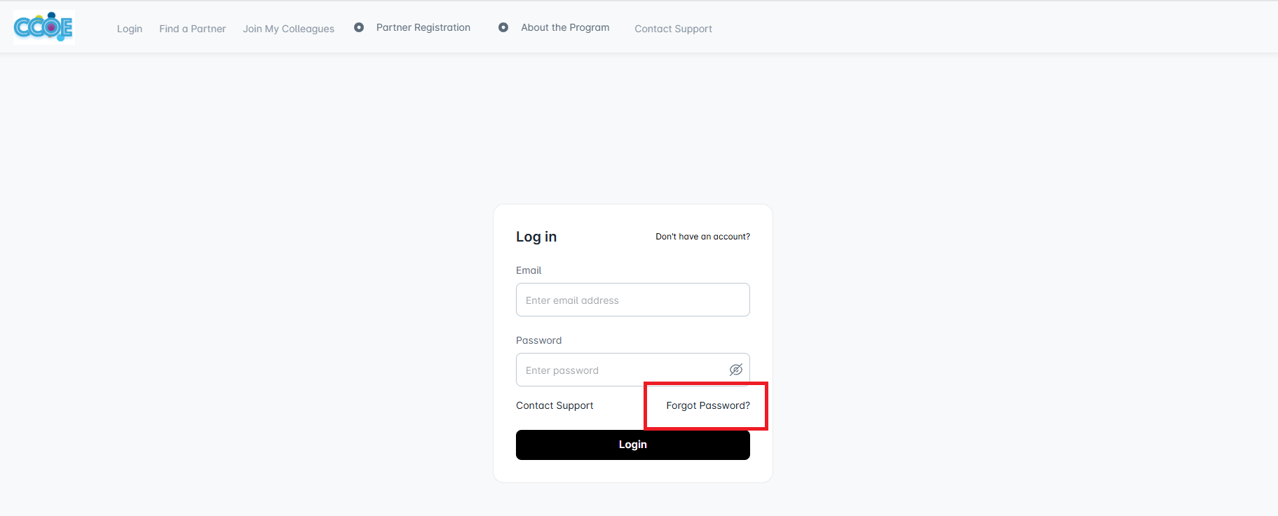If you’ve forgotten your password for the partner portal, you can click the Forgot password? option on the login page.