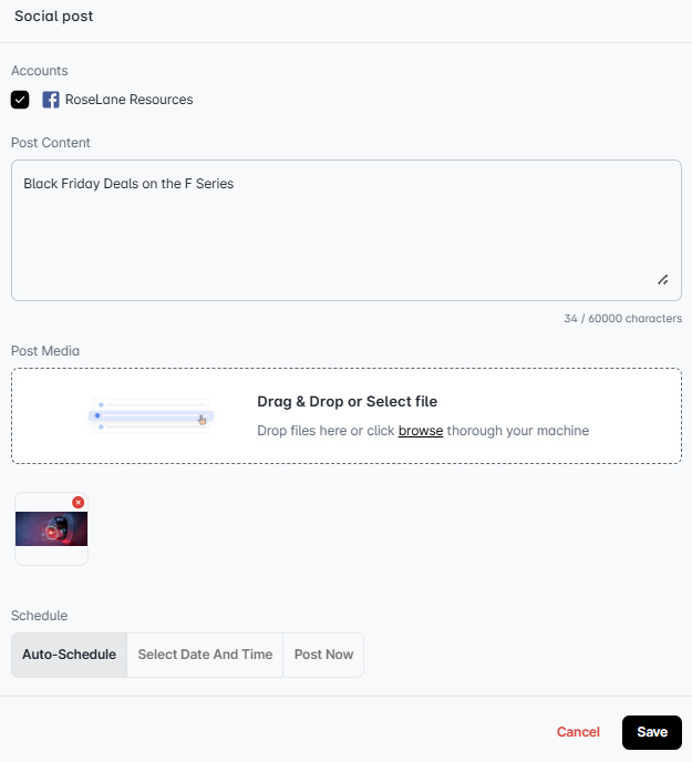 - Post Now - The post will be shared as soon as you click Save.