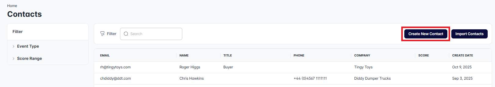 Click Create New Contact.