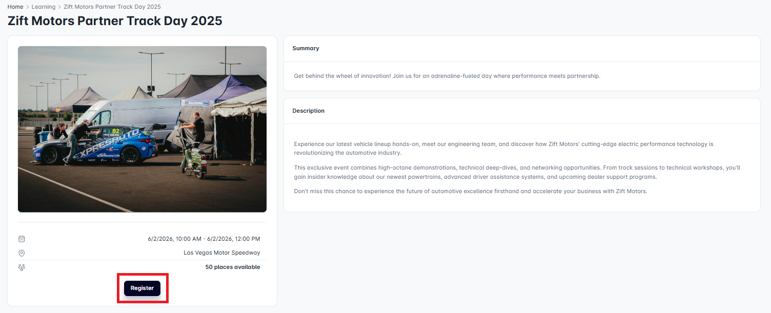 Check the current capacity for the event. If spaces are available, click Register.