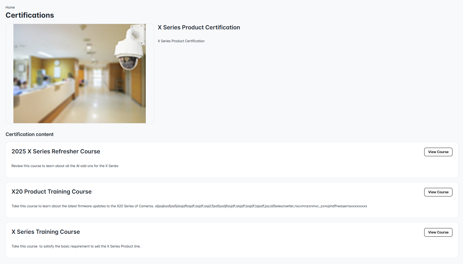 Find the course or certification you want to take, and click View to open it. If required, select a supplier in Filters to limit the list.